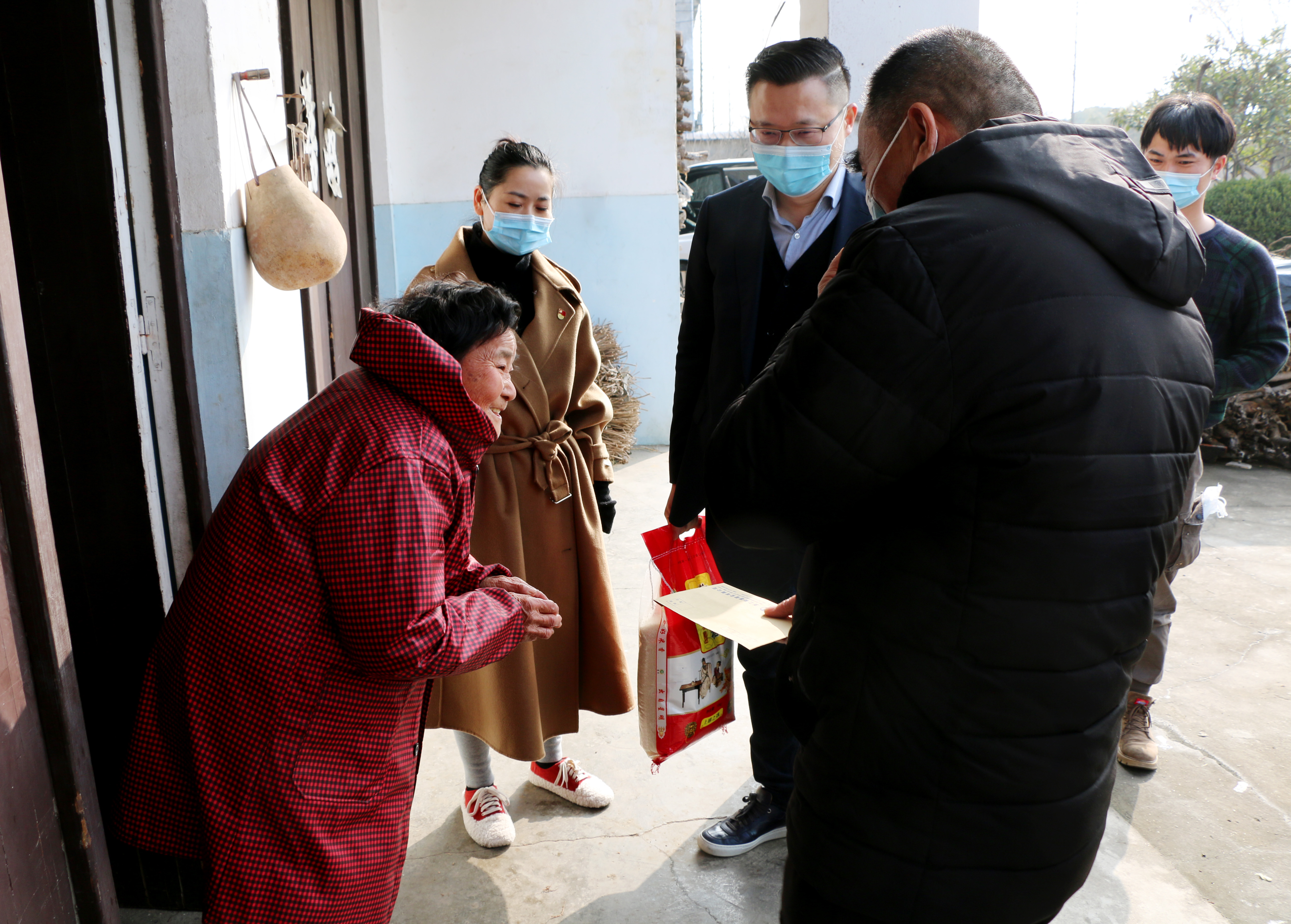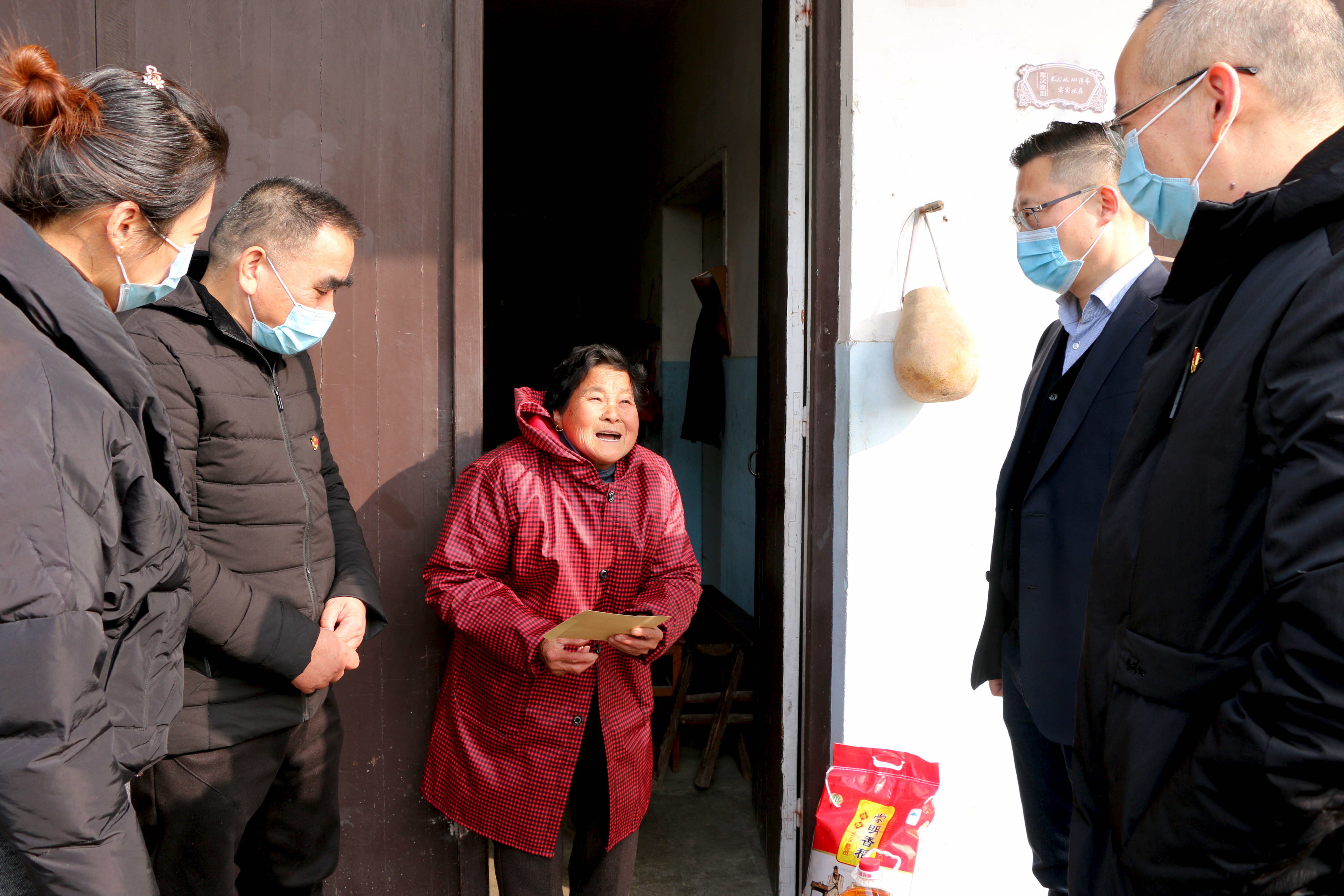 “別忙,我們就來看看你們!”慰問組一行趕忙迎上去,將油、米等慰問品以及慰問金遞過去。頓時,老人滿臉笑容:“你們太有心了,振華、永根,你們……”一聽還有政府指派的黨建指導員也來了,老人激動地說:“??!我們感謝政府?。?rdquo;